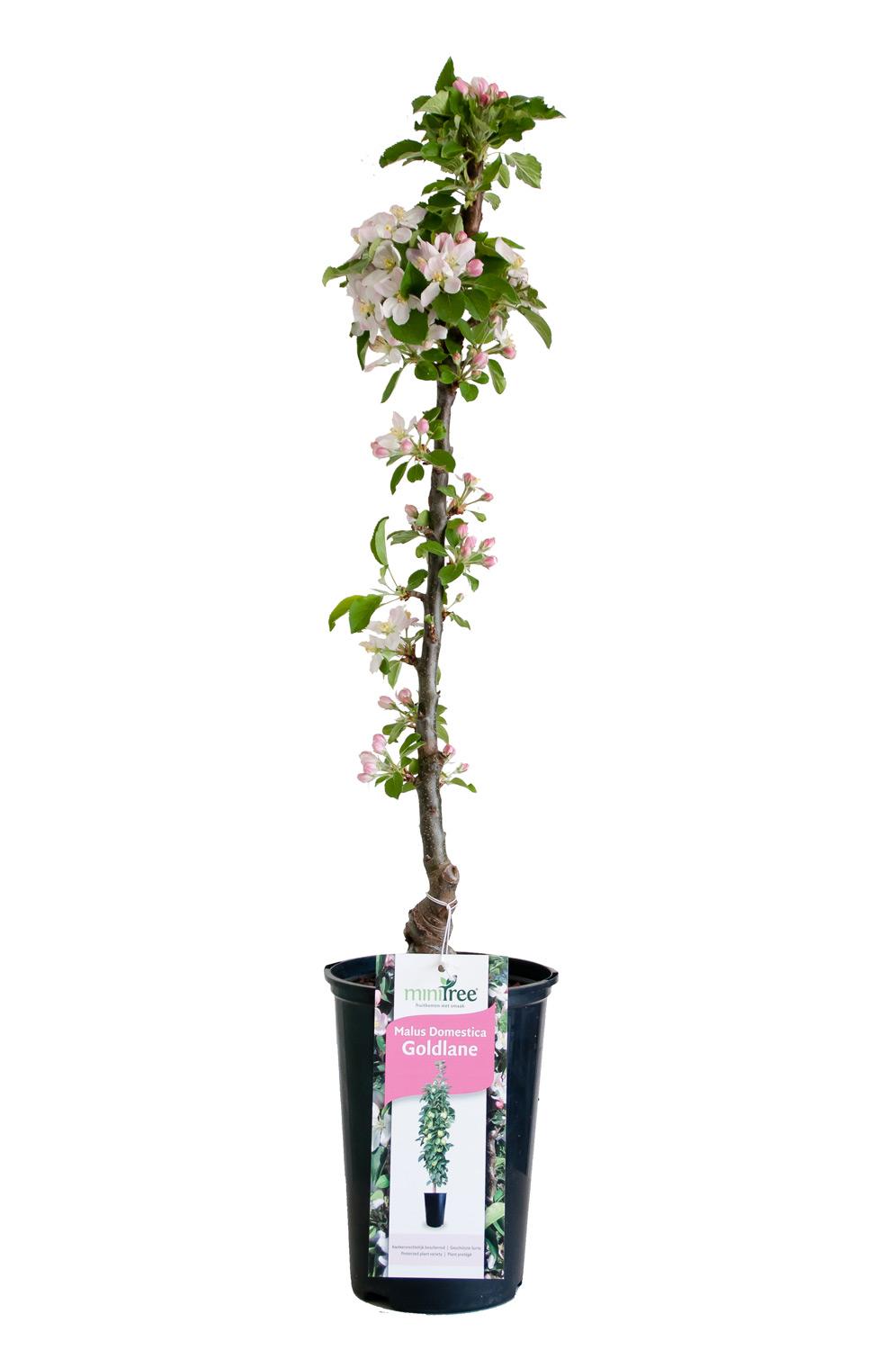 MiniTree Goldlane is een kleine appelboom die heel geschikt is voor in de tuin of op het balkon. Goldlane laat je in het voorjaar genieten van mooie witte bloesems en in het najaar van frisse, friszoete groengele handappels (vergelijkbaar met Elstar). Het onderhoud aan deze appelboom is minimaal. Snoeien en spuiten tegen appelziektes is niet nodig.