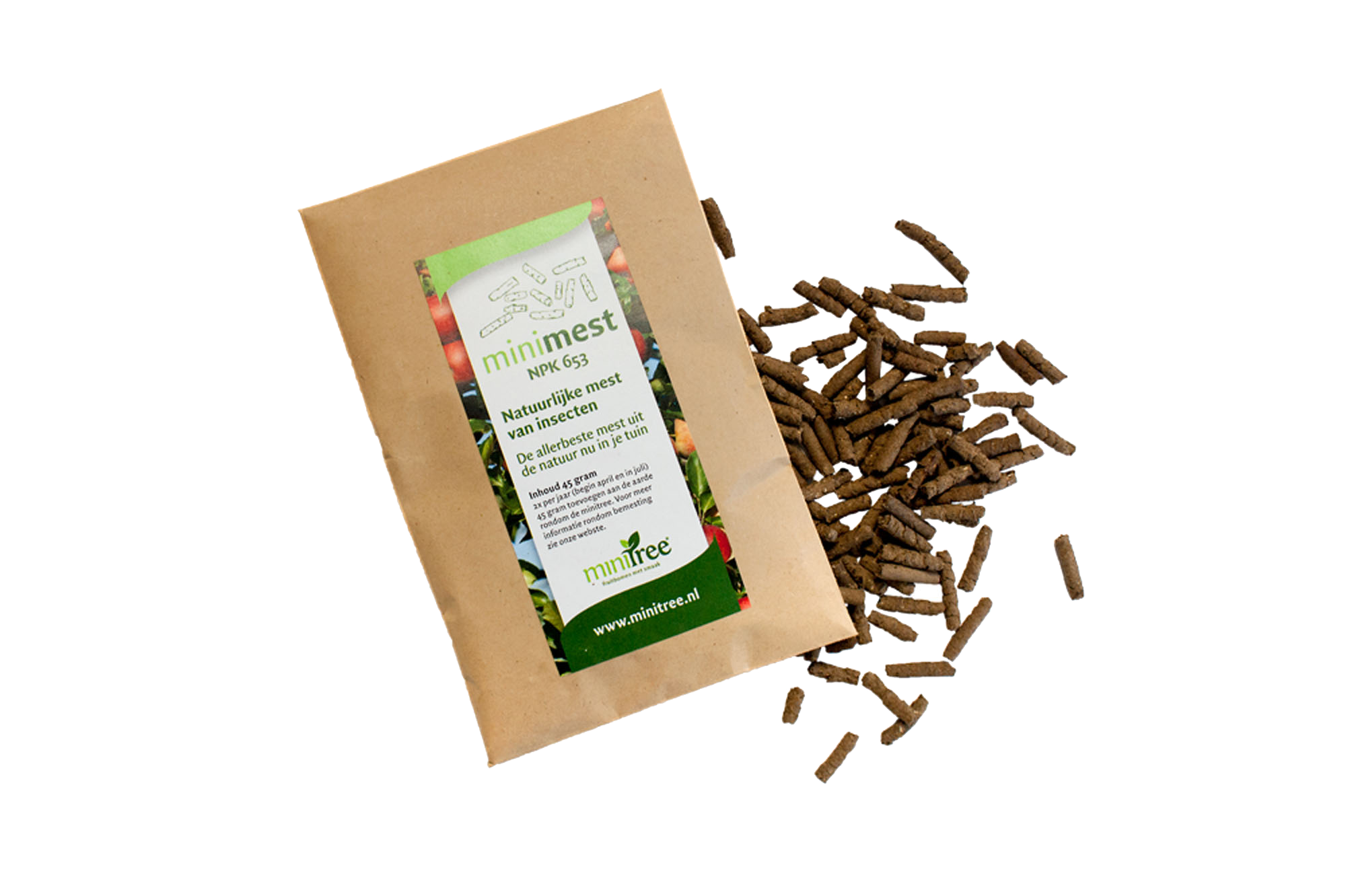 MiniMest is organische insectenmest. De geperste korrels mest zijn afkomstig van de uitwerpselen van insecten. Doordat insecten alleen organisch materiaal eten, zijn de uitwerpselen 100% voor bomen of planten beschikbaar. Minimest is ecologisch en skal gecertificeerd.