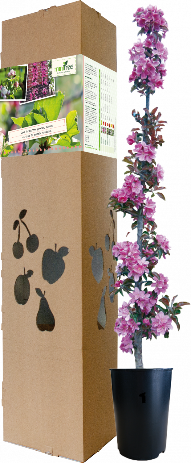 MiniTree Rosalie is een kleine appelboom die heel geschikt is voor in de tuin of op het balkon. Rosalie laat je in het voorjaar genieten van mooie roze bloesem en in het najaar van kleine rode appeltjes met rood vruchtvlees. De appeltjes zijn zuur van smaak en ook heel geschikt voor appelmoes. Het onderhoud aan deze appelboom is minimaal. Snoeien en spuiten tegen appelziektes is niet nodig.
