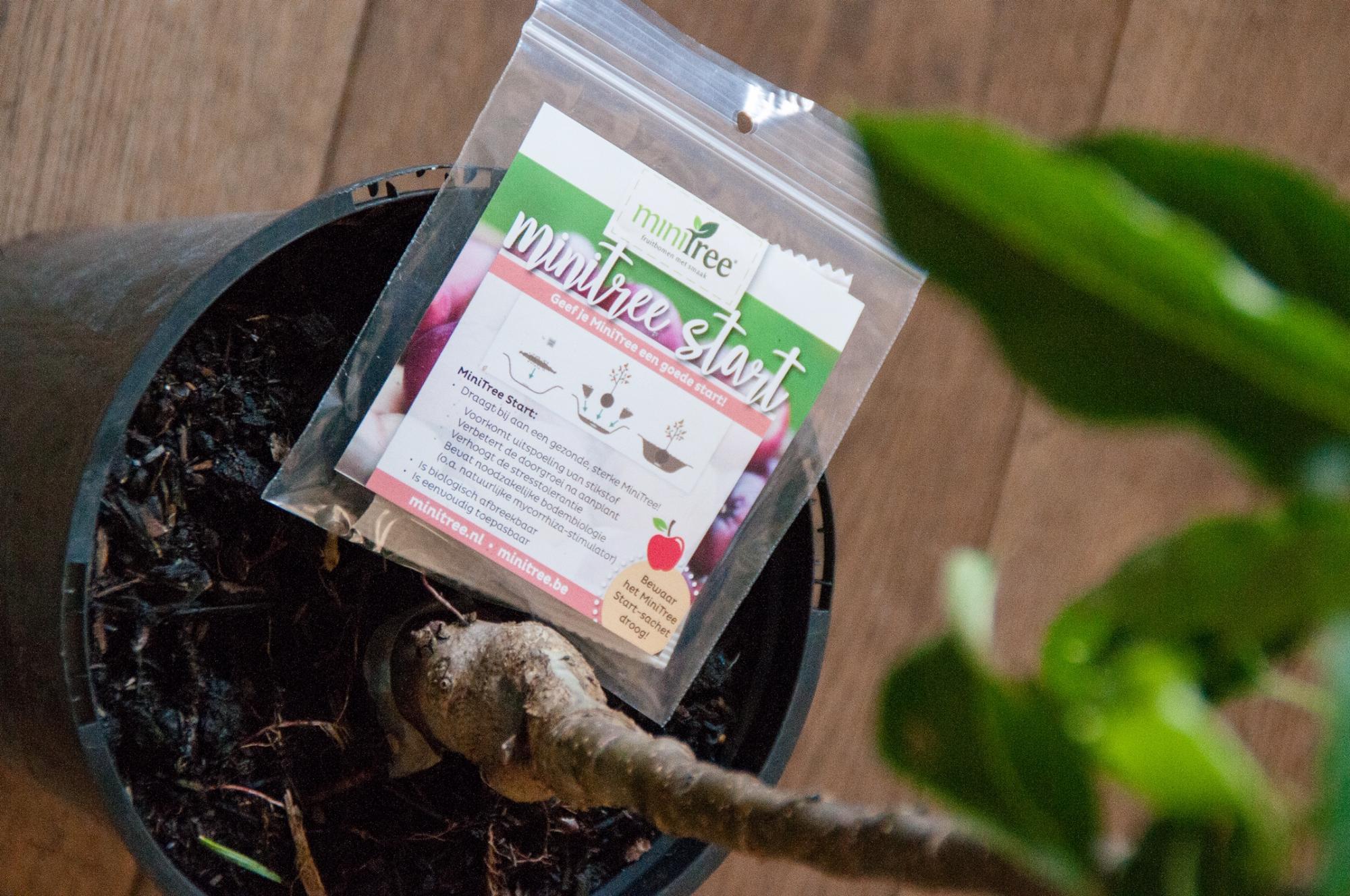 • MiniTree Start; biologisch afbreekbaar sachet dat toegediend wordt bij het planten en bijdraagt aan een gezonde, sterke MiniTree.