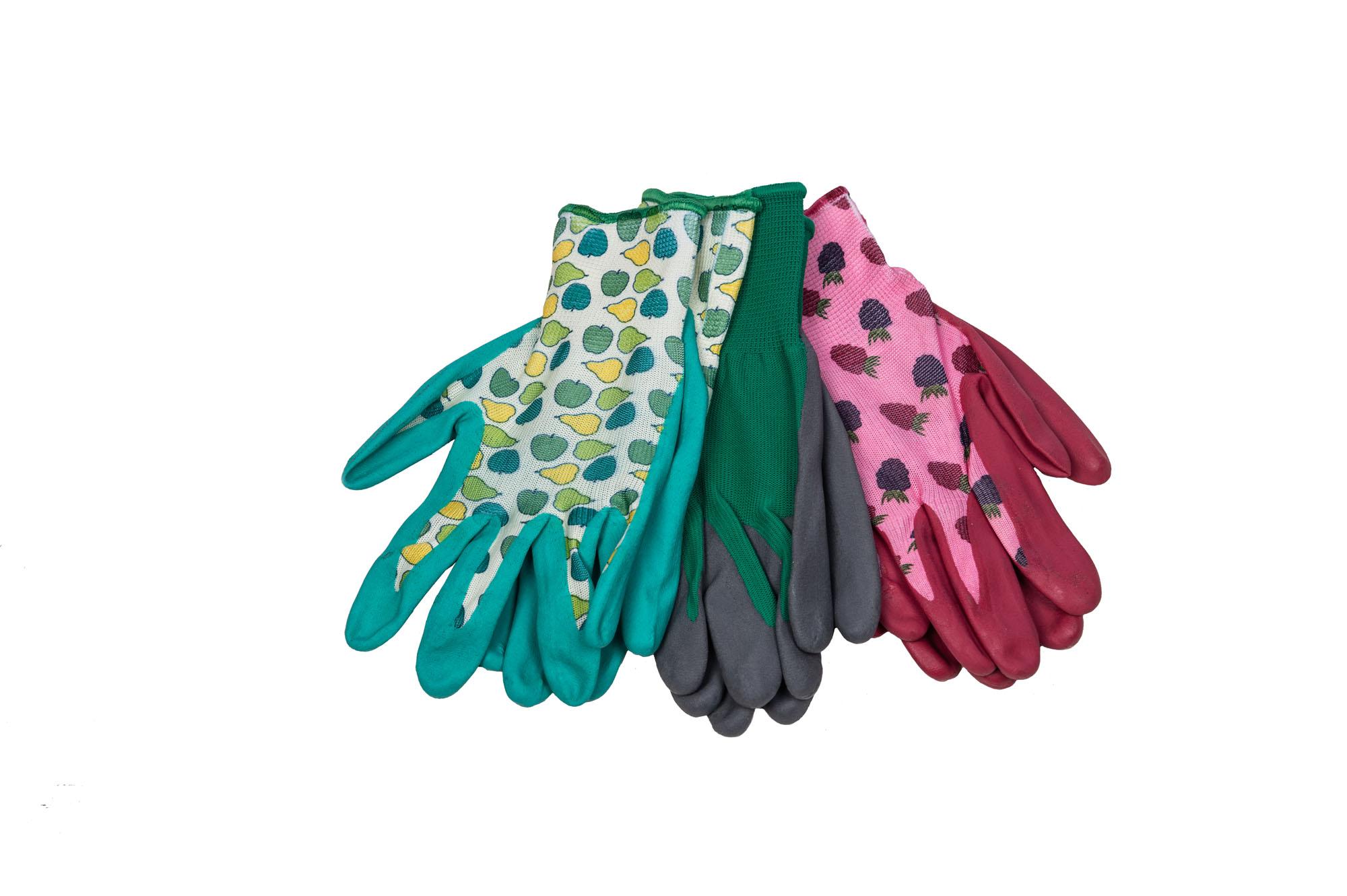 Deze stevige tuinhandschoenen hebben een elastieken band om de pols en een waterafstotende coating. Kleur en bedrukking kunnen afwijken van de afbeelding (groen, donkerroze, lichtgroen).